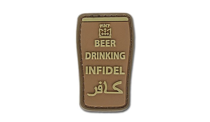 Нашивка 4TAC Beer Drinking Infidel, изготовленная по 3D-технологии из высококачественного прочного и гибкого ПВХ.