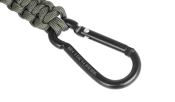 Он оснащен шнурком для регулировки обхвата, черным алюминиевым карабином и составной застежкой для легкого снятия.