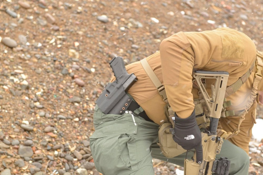 Онасочетает в себе классический вид боевых брюк, анатомический крой и набор из девяти карманов для размещения необходимого снаряжения. Брюки можно подогнать по фигуре с помощью регулировки на талии - пояс не нужен - и благодаря лентам на ногах. Передние карманы имеют усиления, чтобы выдержать интенсивное использование ножа или резака.