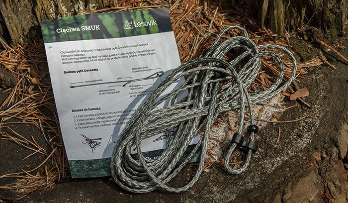 Аккорд SMUK подходит для всех моделей гамаков Lesovik, а его крепление и соответствующая регулировка занимают всего 3 минуты. Шнур также можно использовать для лучшей организации кемпинга, а с помощью карабина к нему можно прикрепить, например, фонарик или перчатки.