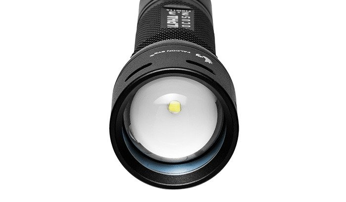 Оснащение линзы фокусом позволяет регулировать фокусировку светового луча, от рассеянного по площади до точного и сфокусированного прожектора с максимальной дальностью 200 м. Кроме того, можно регулировать мощность и включать сигнальный мигающий режим. В комплект входит страховочный наручный шнурок.