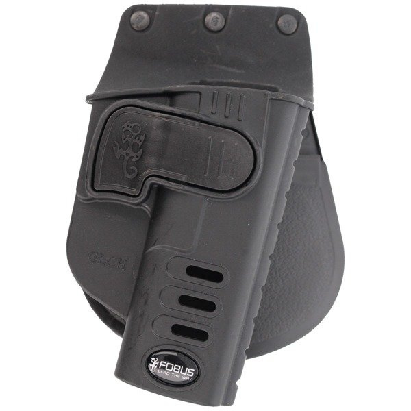 Открытая кобура Fobus, тип CH. Для пистолетов Glock: 17, 19, 22, 23, 31, 32, 34, 35. RX18 Полимер , изготовленный методом литья под давлением из устойчивого к царапинам, ударам и экстремальным температурам пластика высокой плотности.