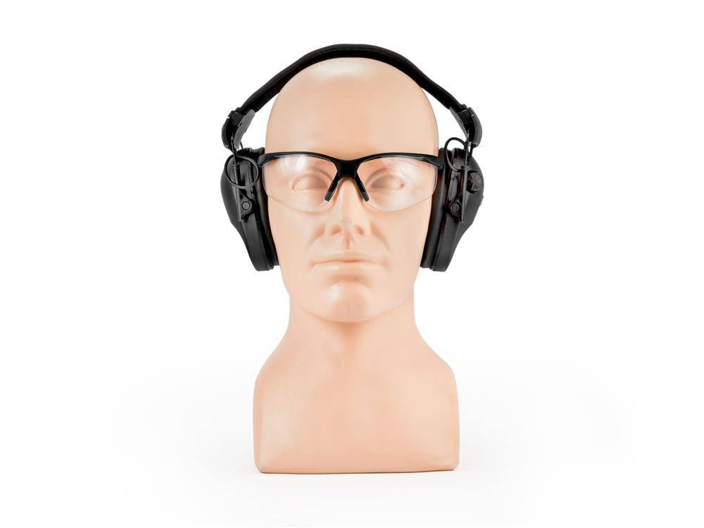 Вместе с наушниками вы получаете прозрачные защитные очки, соответствующие стандарту ANSI. Козырьки из толстого пластика эффективно защищают глаза от летящих осколков или прямого попадания дробовых пуль на поверхность очков. После испытаний было установлено, что защитные очки выдерживают прямой выстрел из пневматической винтовки с расстояния 1 м из снайперской пули мощностью 17 Дж.