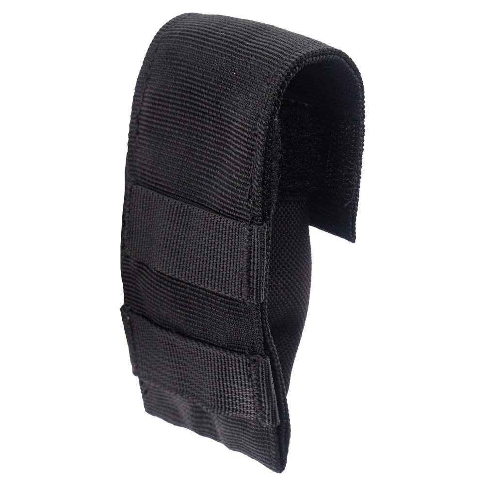 Черный полиэстеровый чехол для ножа, перочинного ножа, мультиинструмента длиной 13 см. Застегивается на липучку, имеет две горизонтальные петли на спине для крепления к ремню или снаряжению.