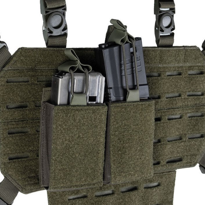 Универсальный загрузчик для двух магазинов от Mil-Tec, с панелью на липучке спереди и сзади. Совместим с большинством стандартных магазинов для винтовок типа AR-15.