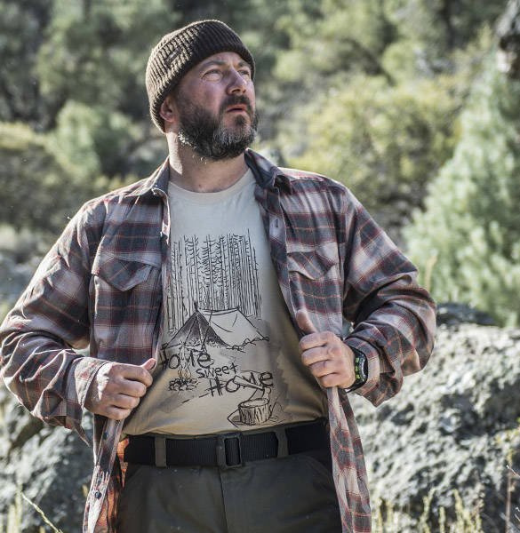 Спереди расположен крупный принт с изображением лагеря в лесу и надписью "Home Sweet Home". Принт долговечен и устойчив к многократным стиркам. Создана для энтузиастов бушкрафта и отдыха на природе. Она отлично подойдет как на каждый день, так и во время активного отдыха, ее можно сочетать с тактическими брюками. Футболка позволяет владельцу выразить страсть к природе и приключениям.