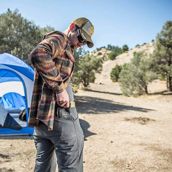 Брюки имеют шесть карманов, расположенных эргономично - они не препятствуют использованию ремней. Их усиленные края позволяют безопасно носить нож или другие инструменты с помощью металлического зажима. Широкие петли позволяют использовать тактический ремень, а маленькие петли, пришитые снизу, позволяют прикрепить карабин или кольцо D-Ring.