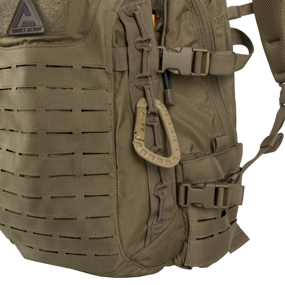 Производитель оснастил рюкзак общей системой крепления аксессуаров по стандарту MOLLE, а в дополнение к этому его ручка выполнена из паракорда, который при необходимости можно легко снять и получить 5,5 м функциональной линии. Кроме того, рюкзак Direct Action оснащен поясным ремнем и нагрудным ремнем для дополнительного комфорта во время длительного использования.