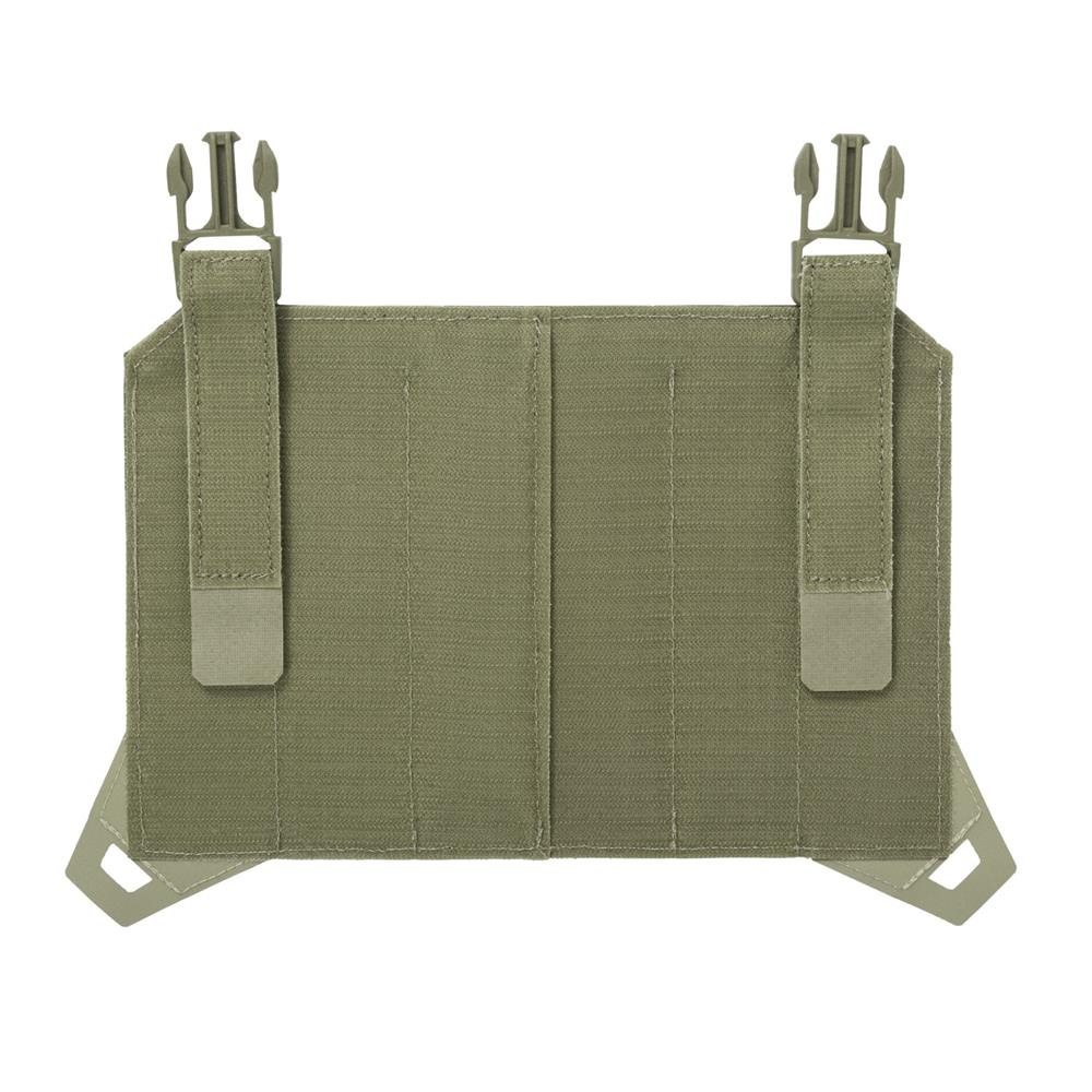 Панель полностью изготовлена из Cordura®, на ее лицевой стороне лазером вырезаны ряды полос MOLLE / PALS. Она крепится на тактических жилетах с помощью прочной липучки и двух пряжек, удерживающих панель на месте. Боковые ручки позволяют легко отсоединить ее от жилета и отрегулировать боковой ремень или свободно снять снаряжение.