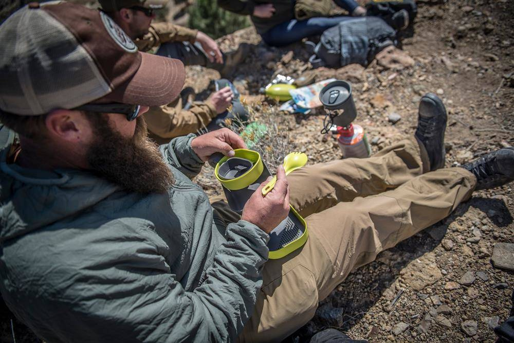 Большое количество карманов позволяет удобно распределить оборудование. Усиленные края передних набедренных карманов позволяют прикрепить нож, фонарь или мультитул. Специальная сетка и вентиляционные отверстия на молнии YKK® на бедрах сохраняют прохладу в теплый день и отводят влагу во время физической активности. Специальные крючки в нижней части ноги позволяют закрепить шнурки на обуви, предотвращая попадание пыли и грязи внутрь ботинок LOWA.