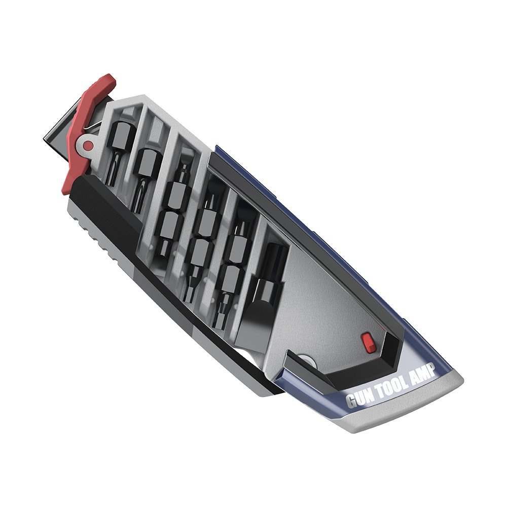Gun Tool AMP™ - это усовершенствованный мультиинструмент, предназначенный для чистки пистолетов платформы 1911 от компании Real Avid. В комплект входит набор необходимых инструментов, позволяющих содержать пистолет в чистоте и выполнять легкие работы по обслуживанию. Мультитул состоит из 24 компонентов, в число которых также входит складное лезвие Drop Point.