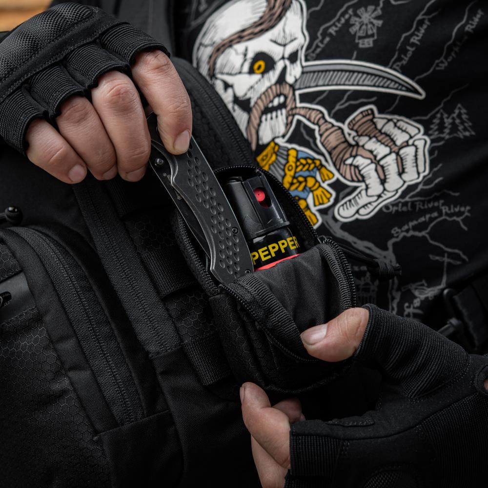 Карман M-Tac совместим с системой крепления MOLLE и может крепиться к тактическому рюкзаку, жилету или поясу. В нем можно разместить небольшие повседневные предметы, такие как мультитул, фонарь, компас или кремень.