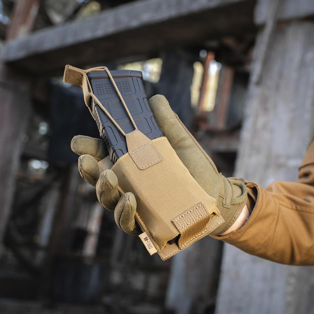 Универсальное устройство для зарядки одного магазина для карабинов АК и AR производства компании M-Tac. В основе конструкции лежит эластичная ткань, которая подстраивается под форму магазина, надежно удерживая его внутри и облегчая извлечение. Крепится на крепежные ремни поясных ремней в системе MOLLE / PALS.