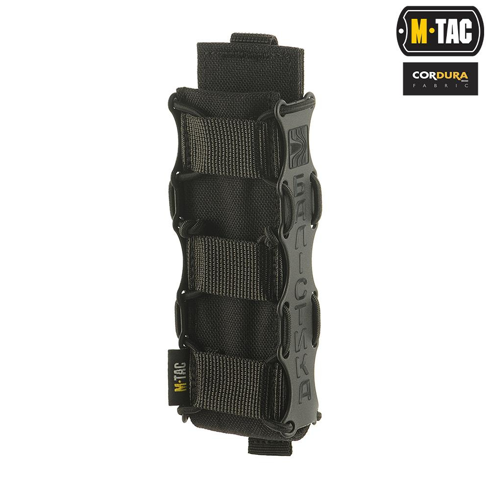 Универсальный загрузчик одного магазина для карабинов PCC (Pistol Caliber Carbine) производства компании M-Tac. Конструкция, основанная на эластичном шнуре, подстраивается под форму магазина, надежно удерживает его внутри и позволяет легко вставлять и извлекать. Крепится на монтажные ремни поясных ремней в системе MOLLE / PALS. Внешние крепежные ремни позволяют крепить дополнительное снаряжение.