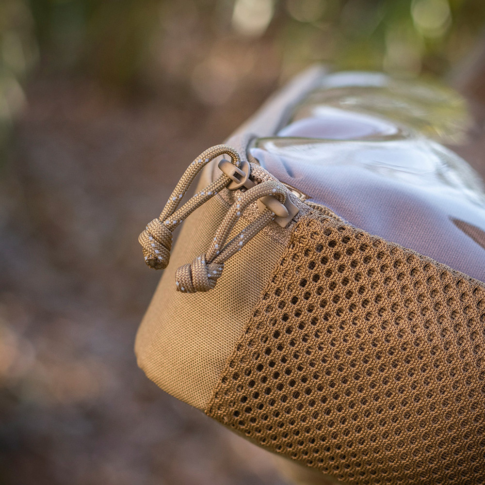 Сетка на нижней стороне выполняет функцию дренажа, обеспечивая правильную циркуляцию воздуха и отвод воды, что делает органайзер пригодным для использования в самых разных условиях. Он отлично подойдет в качестве дополнения к набору EDC. Органайзер оснащен ручкой из тесьмы Mil-STD для удобного использования.