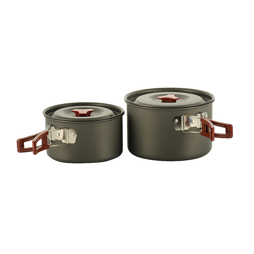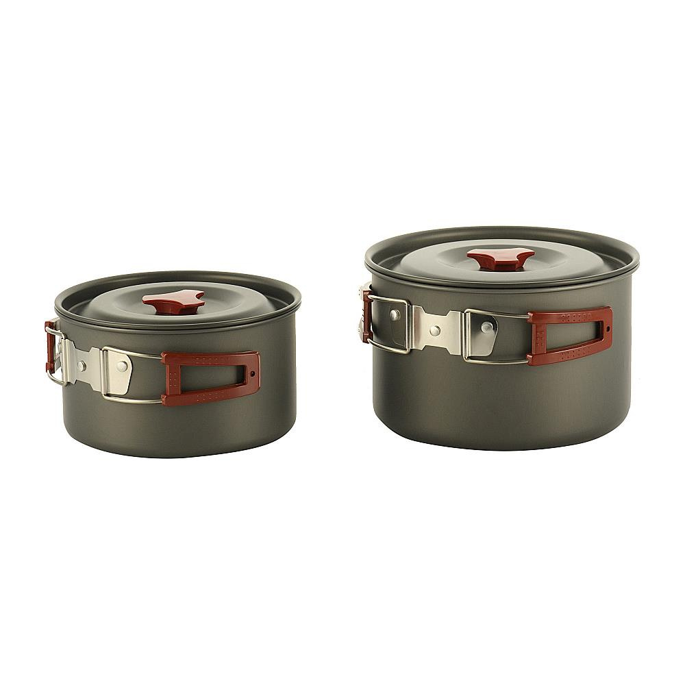 Весь набор помещается в самую большую кастрюлю для удобства транспортировки и хранения. С их помощью вы сможете приготовить себе еду в походе или на рыбалке. Полный набор позволит вам приготовить любое блюдо - от горячего супа или каши до яичницы или жареного мяса на ужин. Просто убедитесь, что у ваших спутников есть походные столовые приборы, и вы сможете насладиться совместной трапезой в количестве до 5 человек.