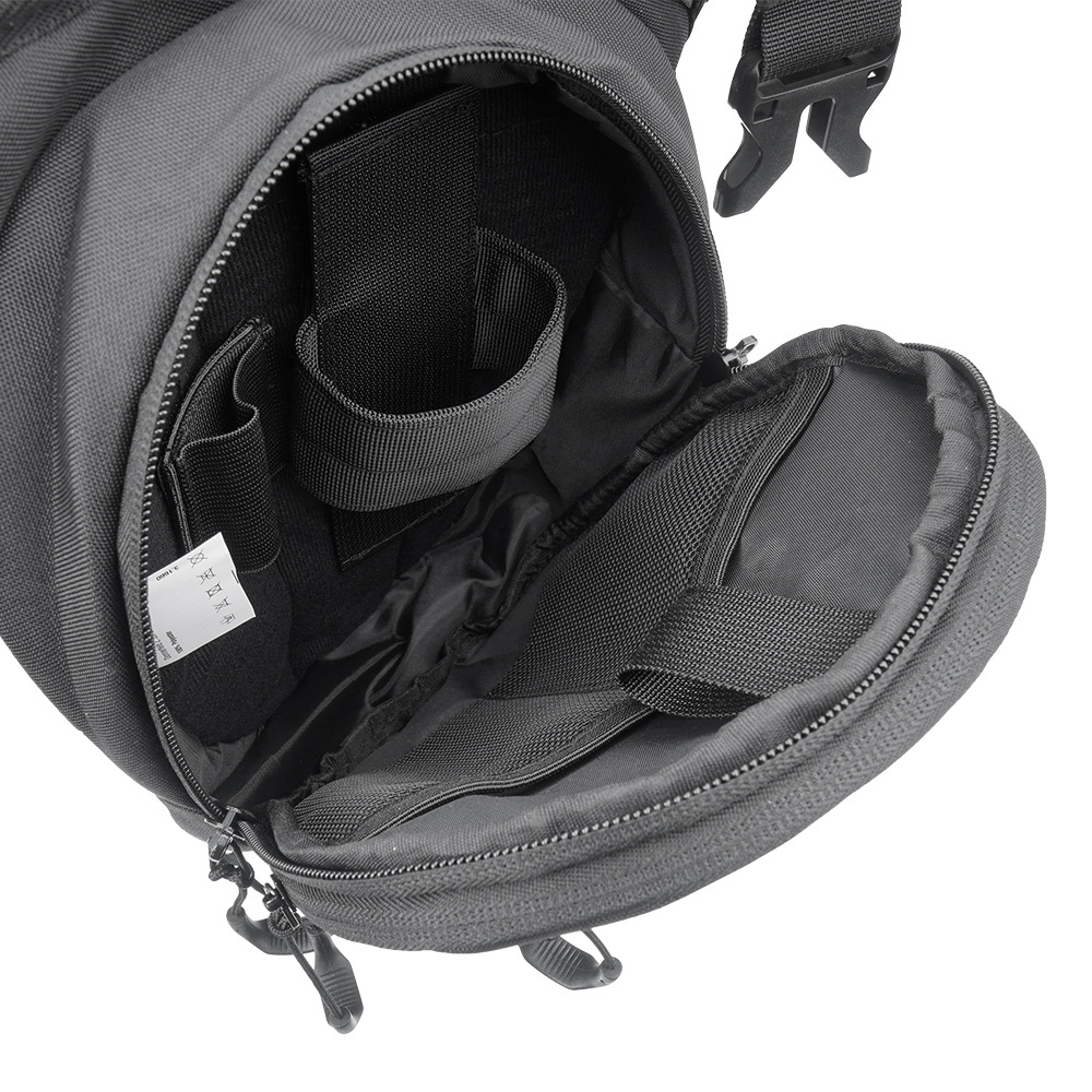 Чехолдля оружия изготовлен из прочного, устойчивого к истиранию и влаге нейлона. В основном отделении имеется мягкий ремень на липучке, к которому крепится держатель для пистолета с длиной ствола не более 4 дюймов, а также второй держатель, предназначенный для пистолетного магазина. Это решение позволяет удобно регулировать расположение держателей в отделении в соответствии с потребностями пользователя или полностью убрать их, создавая больше места для переноски EDC-аксессуаров, таких как бумажник, складной нож или фонарь.