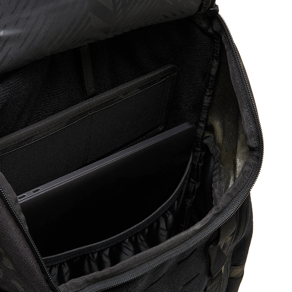Внутри рюкзака есть специальное отделение для camelbak, а также крепежный кронштейн и отверстие для вывода трубки наружу. Отделение для ноутбука позволит пользователю безопасно и комфортно перевозить устройства с диагональю экрана до 20 дюймов. Панель на липучке позволяет установить дополнительные органайзеры или карманы.