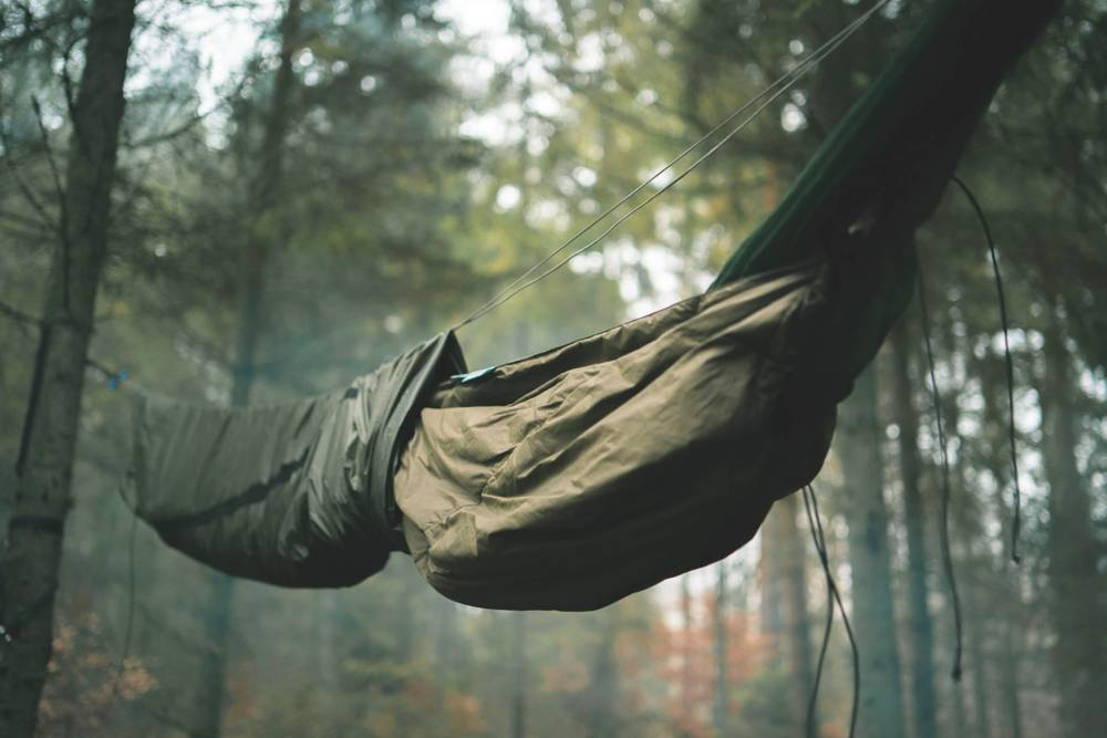 В конструкции предусмотрены два небольших кармана, в которые прячутся грязные крепежные ленты, чтобы содержимое кокона оставалось чистым. Чехол LARVA оснащен входом с обеих сторон и раскладывается так же, как вешается гамак.