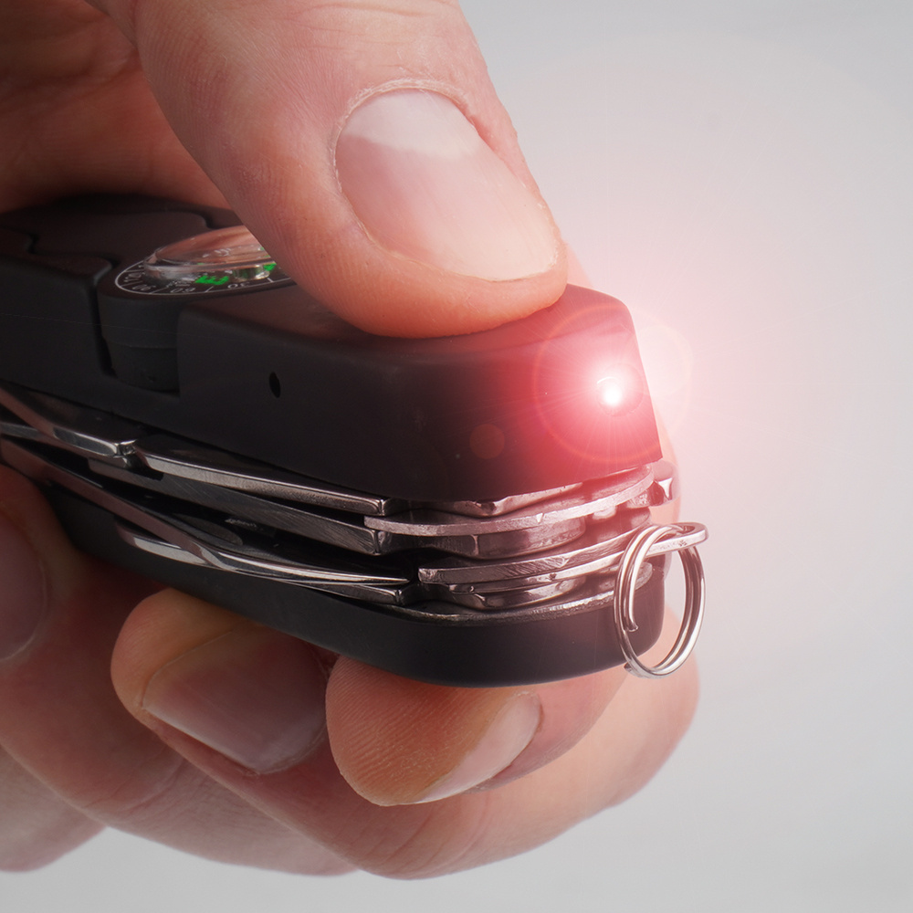 Инструменты, входящие в состав перочинного ножа, пригодятся ежедневно, для выполнения мелких бытовых работ, а также в полевых условиях, особенно компас для поиска направления и красный фонарь для подсветки карты или подачи аварийных сигналов. Набор открывалок обеспечивает основные кулинарные потребности, включая откупоривание бутылки вина.