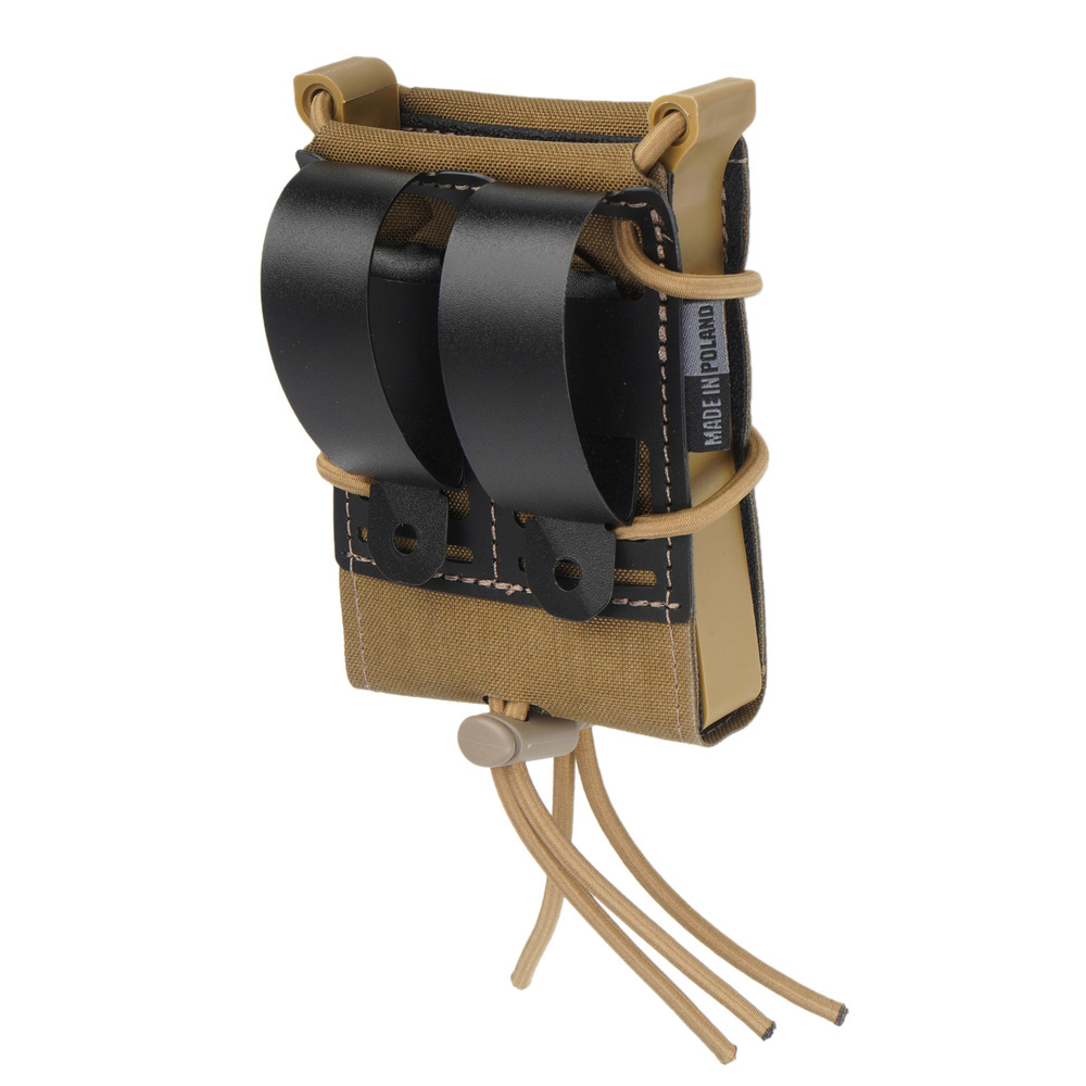 • Открытое загрузочное устройство для магазина винтовки типа AR/AK и пистолетного магазина. Позволяет носить два типа магазинов одновременно. Изготовлен из Kydex и Cordura. Имеет усиленную противоскользящую конструкцию. Совместим с креплением MOLLE. Коричне