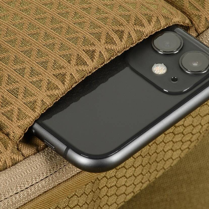 Передние карманы закрываются на молнии YKK, а сзади имеется специальный карман для телефона. Боковая тесьма MOLLE позволяет прикрепить дополнительное снаряжение или карабин, а в основном отделении есть крепления для модульных органайзеров. Это позволяет удобно организовать носимые вещи и иметь к ним быстрый доступ.
