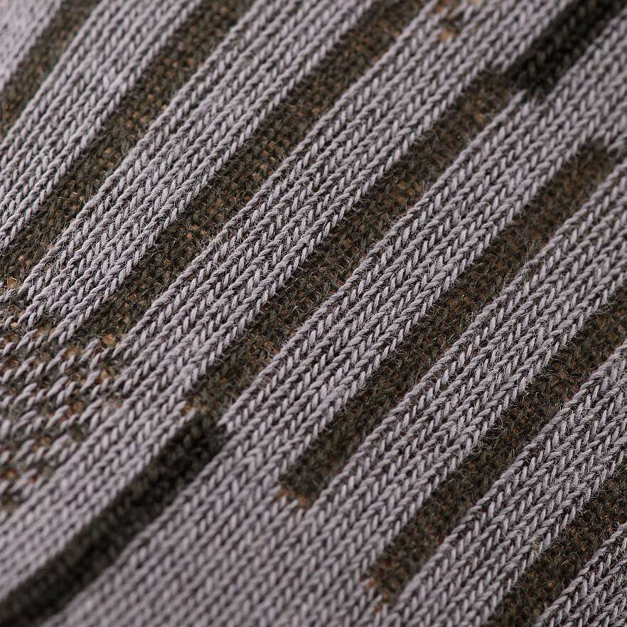 Носки изготовлены преимущественно из хлопковых волокон, с добавлением полиамида и эластана. Высококачественное плетение равномерно отводит влагу наружу, сохраняя ноги сухими, а специальная фиксация в средней части стопы предотвращает сминание и проскальзывание носка в треккинговых ботинках. Широкая стелька равномерно прилегает к икре, не вызывая неприятного ощущения давления. Анатомическая форма обеспечивает идеальное прилегание к стопе, что повышает комфорт пользователя и предотвращает натирание.