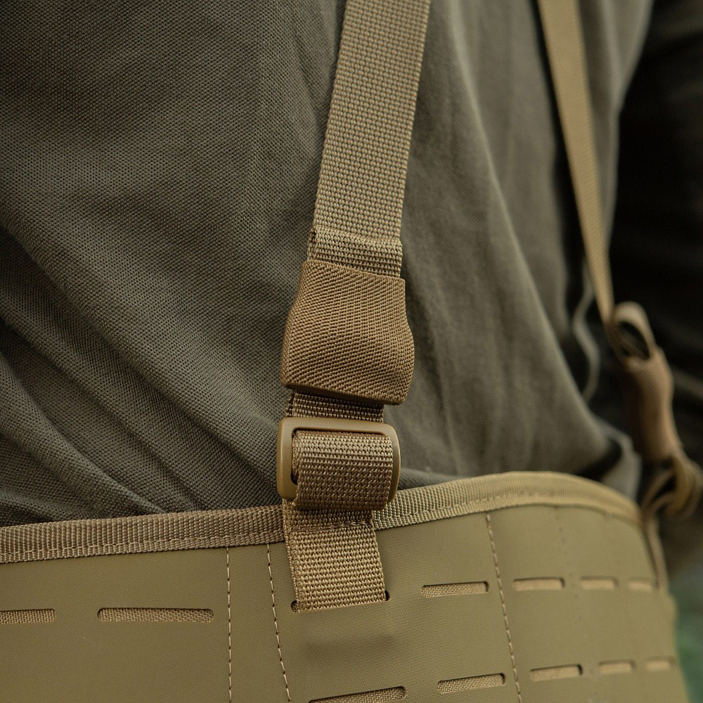 Эти полностью регулируемые ремни обеспечивают индивидуальную посадку. Они имеют четыре точки крепления для тактического ремня и удобные, мягкие плечевые накладки.