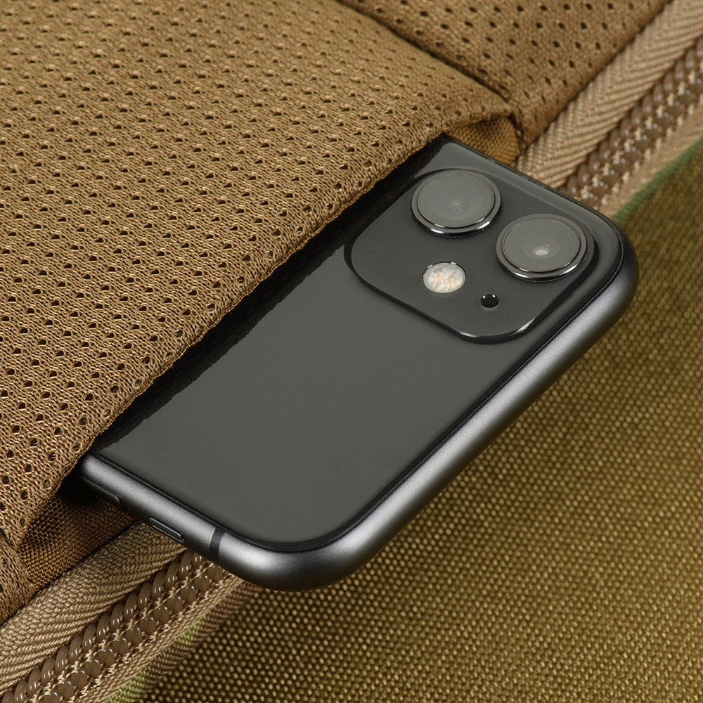 Сумка изготовленаиз материалов Cordura 500D и Cordura Hex, что гарантирует устойчивость к истиранию, разрывам и воде. Основное отделение закрывается клапаном на липучке. Внутри отделения находится органайзер с эластичными петлями и карманами, идеально подходящий для хранения мелких предметов, таких как ручка, нож, фонарь или мультитул. Кроме того, на клапане имеется плоский карман для документов, бумажника или других мелких аксессуаров. На передней и задней частях почки расположены ремни крепления системы MOLLE/PALS, позволяющие закрепить совместимые карманы или подсумки.
