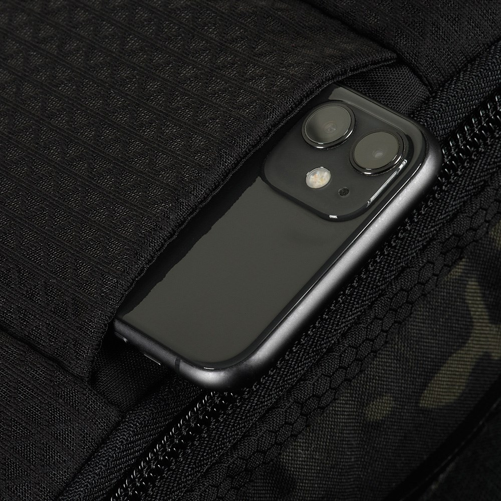 - Задняя часть сумки оснащена вентилируемой сеткой и местом для смартфона