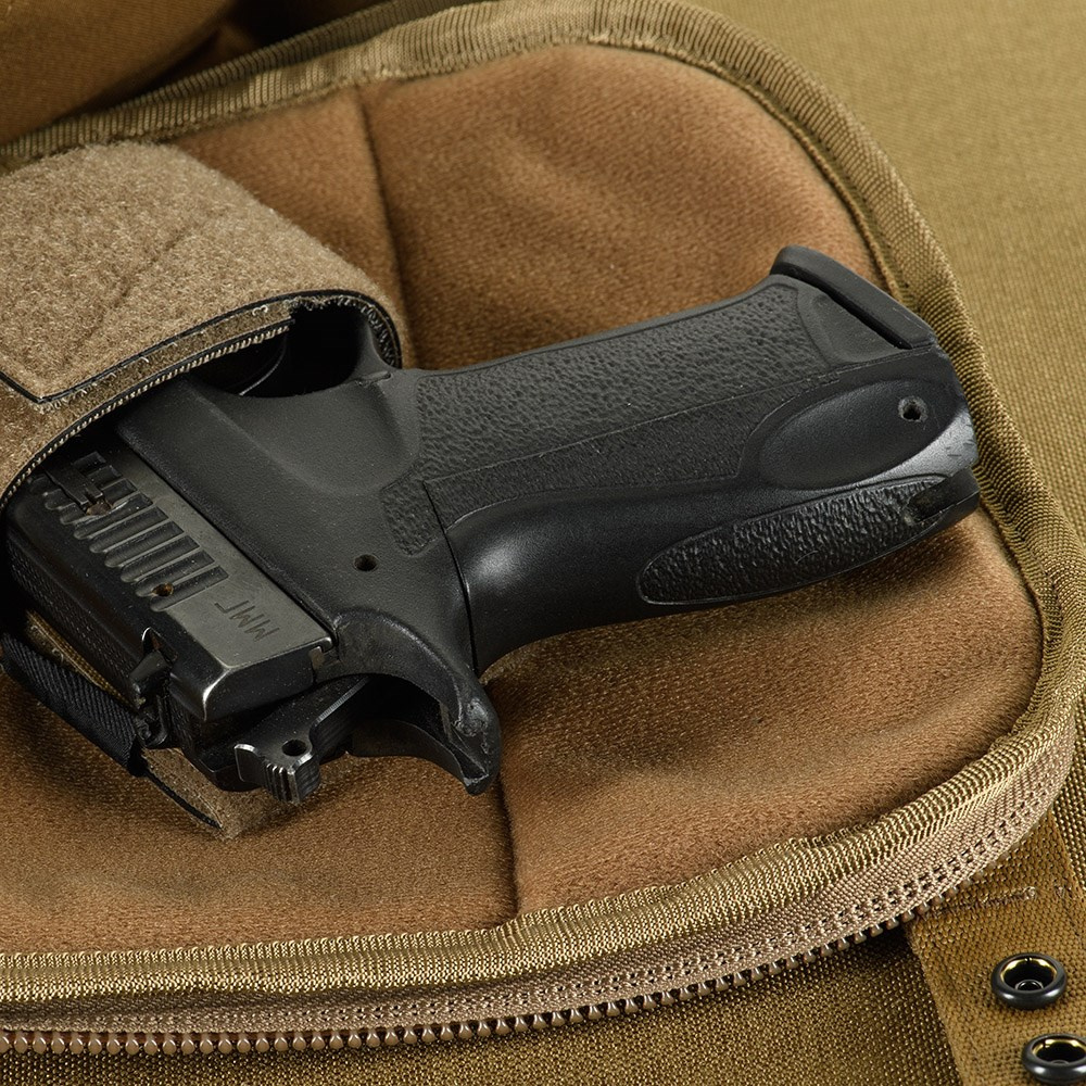 - Снабжена небольшим отделением для оружия, обеспечивающим быстрый доступ к пистолету