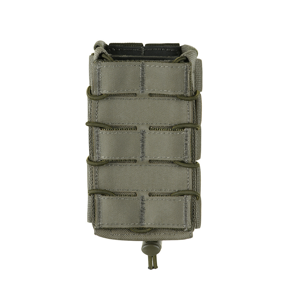 Подсумок M-Tac совместим с системой крепления MOLLE, поэтому его можно легко закрепить на совместимом тактическом ремне. Кроме того, производитель оснастил его шнуром, позволяющим регулировать удержание подсумка, тем самым защищая содержимое от случайной потери.