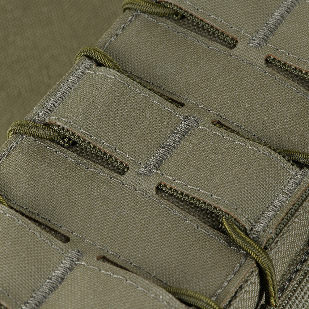 Двойной подсумок M-Tac с открытой конструкцией, предназначенный для переноски двух винтовочных магазинов и совместимый с большинством популярных моделей для платформ AR/AK. Боковые и лицевая стороны подсумка изготовлены из материала 500D Cordura, а каркас и внутренняя часть - из телячьей кожи нейлонового плетения.
