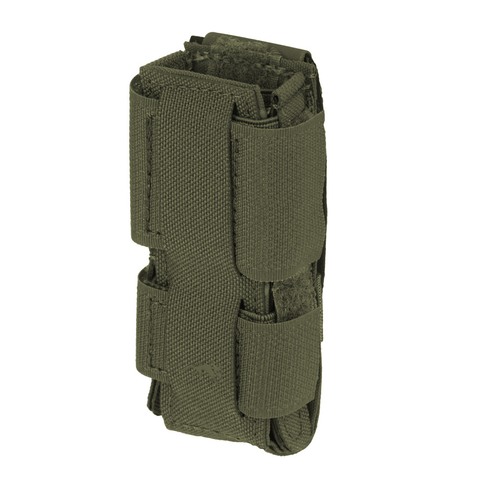 Пистолетный подсумок, совместимый с большинством двухрядных магазинов для стрелкового оружия. Используемая система MOLLE позволяет легко закрепить его на стрелковом поясе или тактическом жилете. Боковой стабилизатор, крепящийся с помощью липучки, увеличивает жесткость подсумка, благодаря чему он сохраняет свою форму даже после извлечения из него магазина.