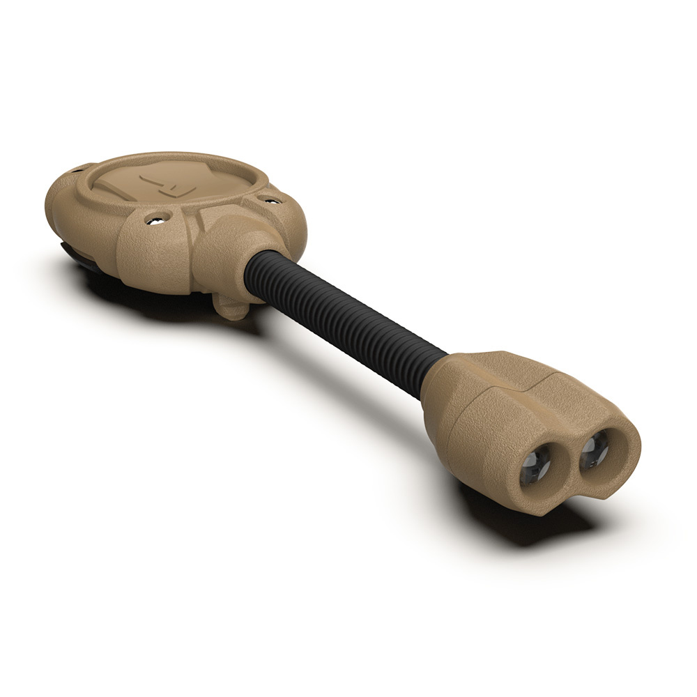 Легкий и компактный тактический фонарь со световым потоком 10 лм. Предназначен для установки на шлемы, а также на системы MOLLE или M-LOK. Пользователь может выбирать между белым светом и цветом RGB в зависимости от своих потребностей. Для управления и программирования цвета используется одна большая кнопка, что позволяет использовать фонарь в тактических перчатках. Водонепроницаемость по стандарту IPX4 делает фонарь пригодным для использования даже в неблагоприятных погодных условиях.