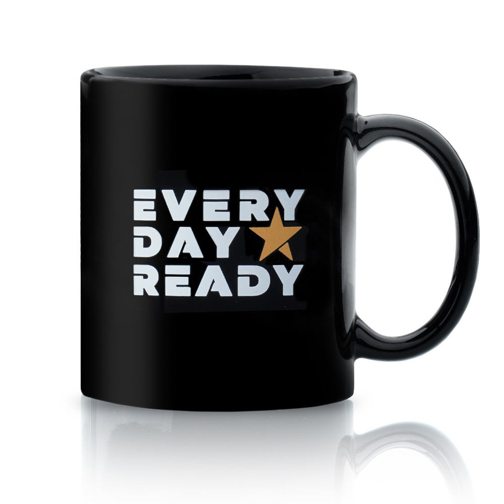 • Керамическая кружка объемом 300 мл с графикой SpecShop и фразой "Every Day Ready". Можно мыть в посудомоечной машине. Цвет: Черный.