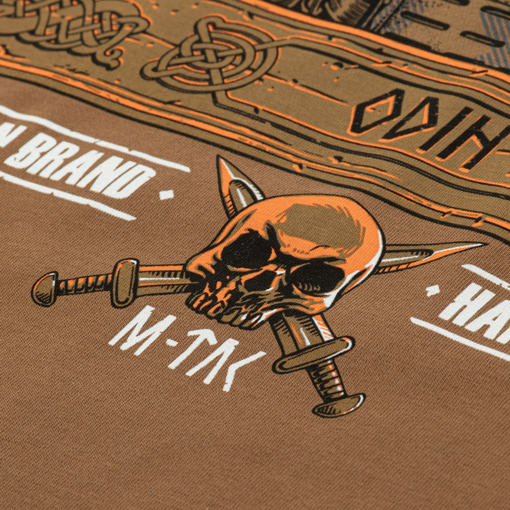 На груди футболки - принт с изображением бога войны и мудрости Одина в современном боевом снаряжении и шлеме с ночным видением. Его сопровождают вороны Хугин и Мунин, символизирующие мысль и память. Принт выполнен с использованием устойчивых к выцветанию и стирке красок MagnaColours®. Он отлично подойдет как для повседневной жизни, так и для активного отдыха, его можно сочетать с тактическими брюками.
