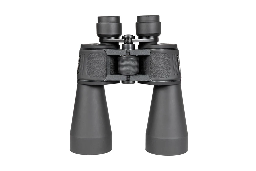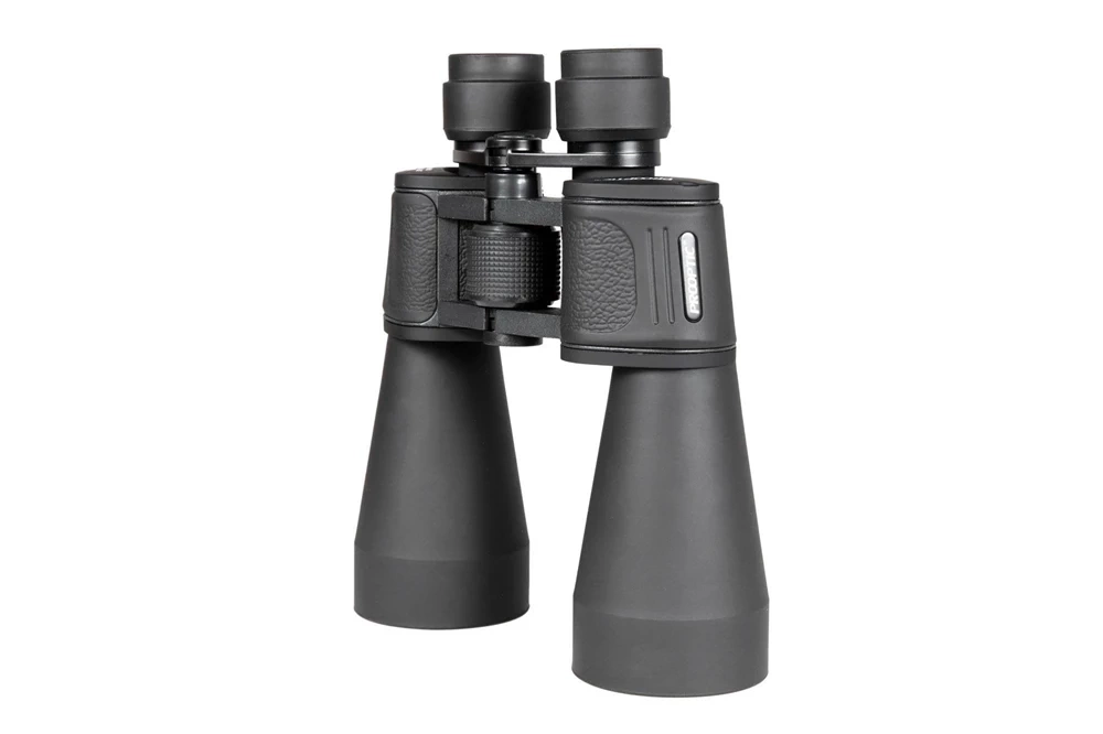 Корпус бинокля изготовлен из алюминия с резиновым покрытием, что делает его прочным и отлично поглощающим удары. В комплект также входит чехол для переноски, который можно носить на поясе.