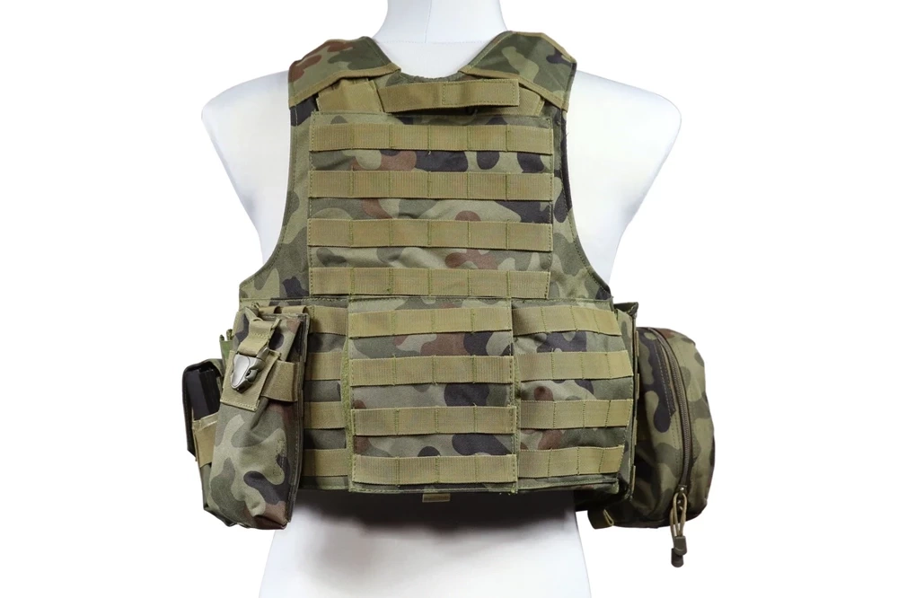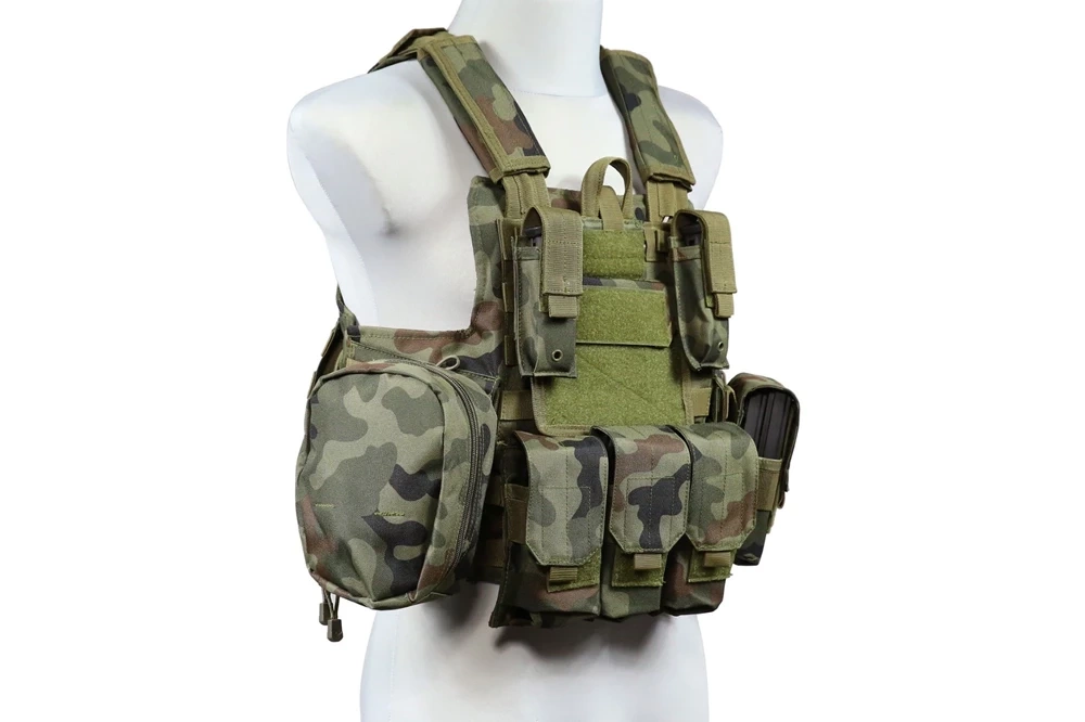 Модульный жилет оснащен одним тройным подсумком для винтовки и одним двойным. Подсумки позволяют носить до 10 магазинов ASG типа M4/M16. В жилете есть отделения для баллистических патронов, карман для рации, 2 пистолетных подсумка и карман для медикаментов.