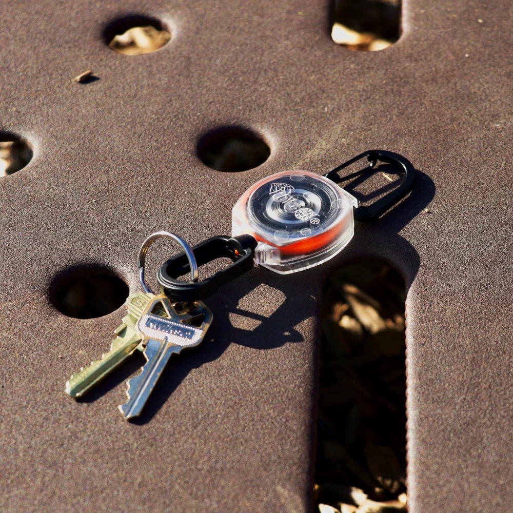 Компактный ретрактор с современным дизайном. Использование прозрачного корпуса и ярко окрашенного шнура создает легко узнаваемое устройство, на котором, например, можно носить ключи. Сам ретрактор можно легко закрепить на D-кольцах, популярных в рюкзаках. Он застегивается с помощью алюминиевого защелкивающегося крючка, а предметы можно удерживать на полимерном. Он надежно оттягивает вытащенные предметы.