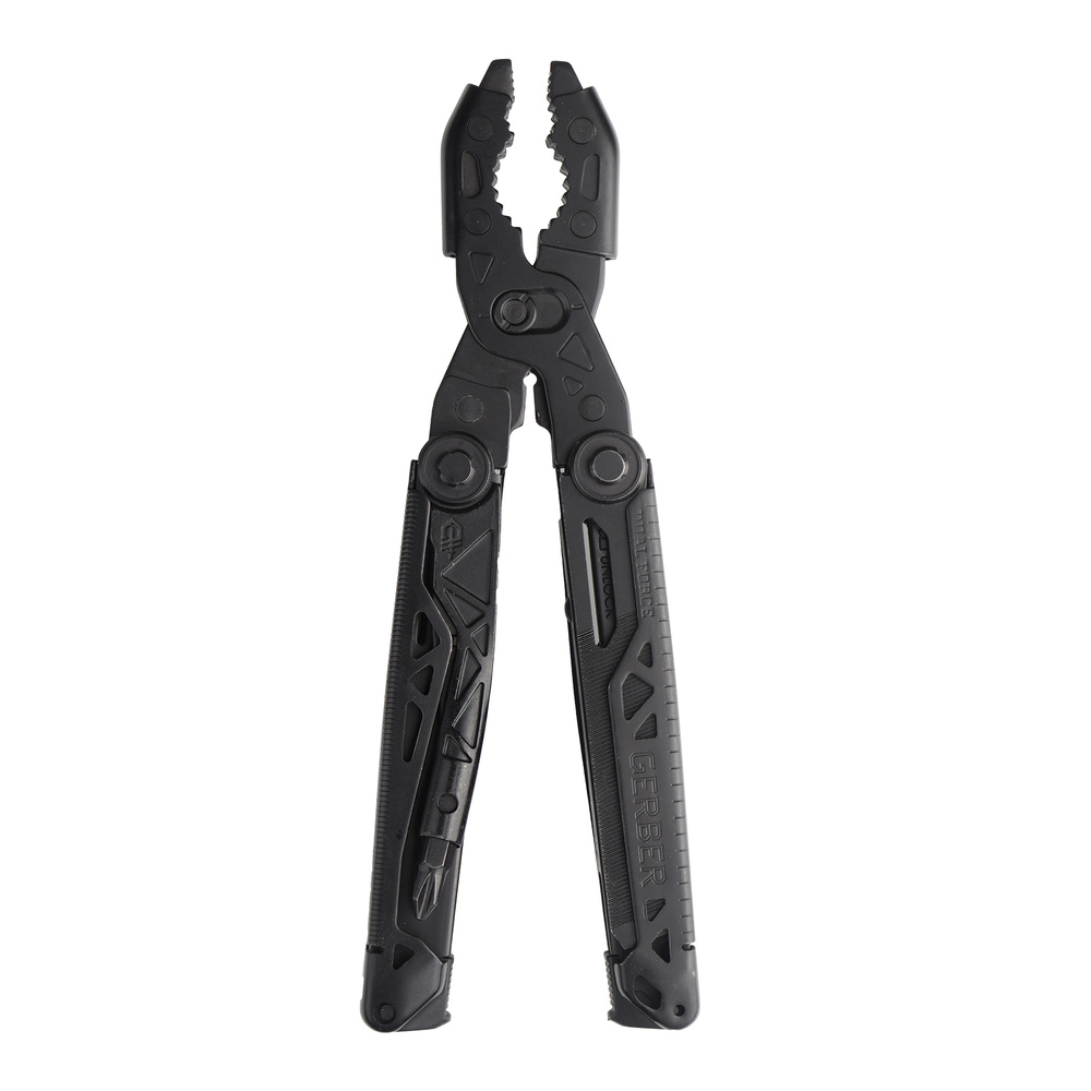 Мультиинструмент Dual Force с уникальными губками с центральной осью и драйвером для бит от Gerber. Он полностью изготовлен из нержавеющей стали, покрытой черным оксидом для дополнительной защиты от длительного износа и коррозии. Уникальные губки Dual Force имеют три различные контактные поверхности для работы как с мелкими деталями, так и с крупными, например шестигранными болтами.
