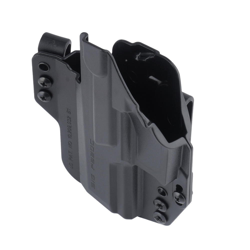 Конструкция кобуры позволяет использовать коллиматоры с низкой посадкой и нарезные стволы. Регулируемое сопротивление рукоятки позволяет настроить силу удержания оружия в зависимости от предпочтений пользователя. Угол наклона кобуры поддерживает эргономичное ношение в положении "аппендикс". В комплект также входит внутренняя кобура для магазина, которую можно объединить с пистолетной кобурой в одну удобную систему.