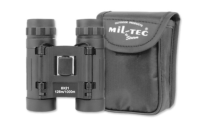 У біноклі Mil-Tec Mini 8x21 використовуються призми Roof, які забезпечують тонку, компактну конструкцію. Лінзи покриті шаром антивідблиску для покращення світлопропускання в умовах денного світла. Корпус виготовлений з комбінації алюмінію і полімеру, що забезпечує стійкість до незначних механічних пошкоджень при збереженні невеликої ваги.