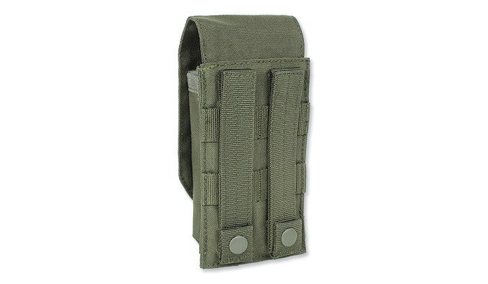 Підсумок кріпиться до розвантажувального жилета за допомогою двох MOLLE/PALS-сумісних вертикальних ременів.