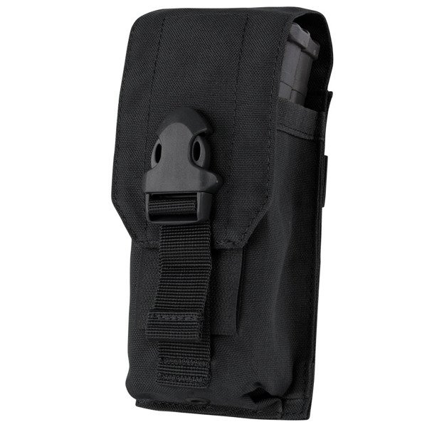 Виготовлений з поліестеру щільністю 1000D, універсальний підсумок для гвинтівки призначений для одного або двох магазинів для довгоствольної зброї. Він також вміщує один електрошокер Taser X2.