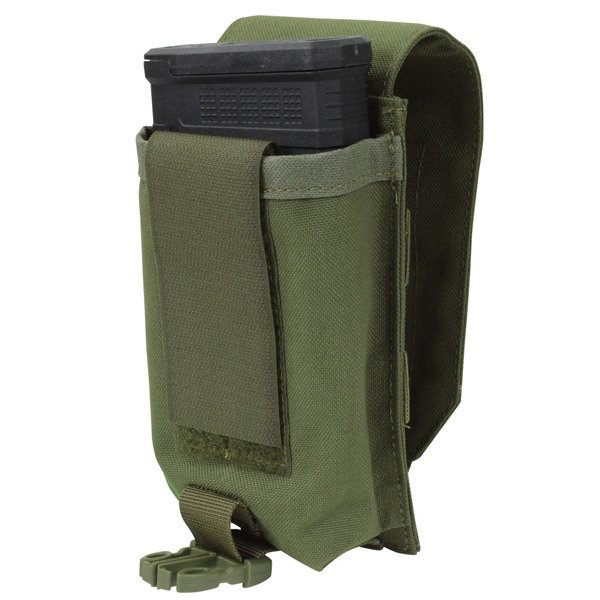 Підсумок кріпиться до розвантажувального жилета за допомогою двох MOLLE/PALS-сумісних вертикальних ременів.