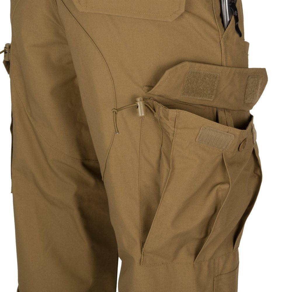 Військові штани CPU® (Combat Patrol Uniform) від Helikon-Tex натхненні зразком польської уніформи 2010 року та виготовлені з тканини PolyCotton Ripstop. Розроблені з урахуванням високої ергономіки, вони забезпечують повний діапазон рухів та ефективну роботу на складній місцевості. Вільний крій поєднує в собі комфорт та функціональність. Регульований пояс та утяжки в штанинах забезпечують точну посадку по фігурі.