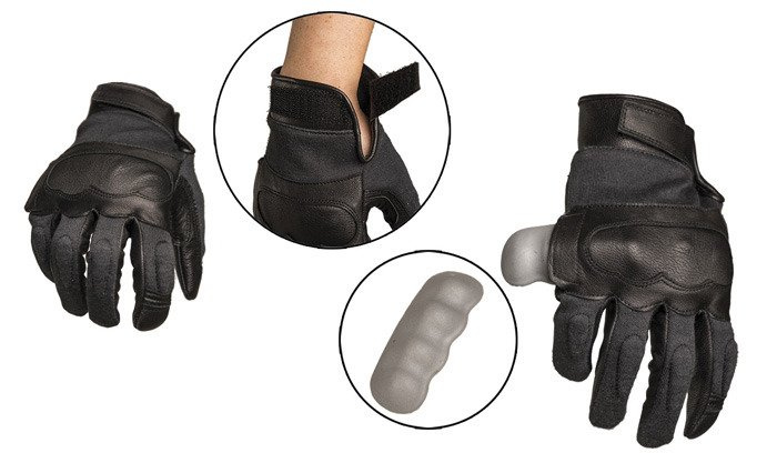 Завдяки використанню поліамідної тканини Kevlar® DuPont™, рукавички демонструють підвищену стійкість до порізів та інших видів пошкоджень. Використання козячої шкіри в інтер'єрі сприяє кращому відчуттю предметів, що полегшує поводження, наприклад, з маніпуляторами для зброї.