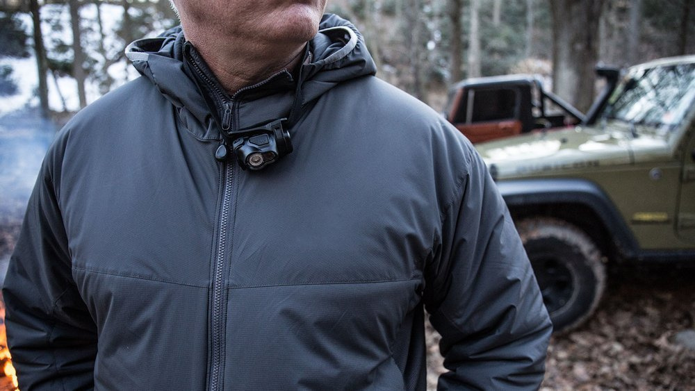 Корпус ліхтаря встановлений на шарнірі, що дозволяє регулювати кут освітлення. Конструкція відповідає стандарту водонепроникності IPX4, що захищає від бризок під час дощу. Ліхтар кріпиться на регульованій еластичній стрічці, сумісній з шоломами та головними уборами. Живиться від двох батарейок типу ААА, розташованих збоку на корпусі. Доступ до батарейного відсіку не потребує інструментів, що забезпечує легку заміну джерела живлення в польових умовах.