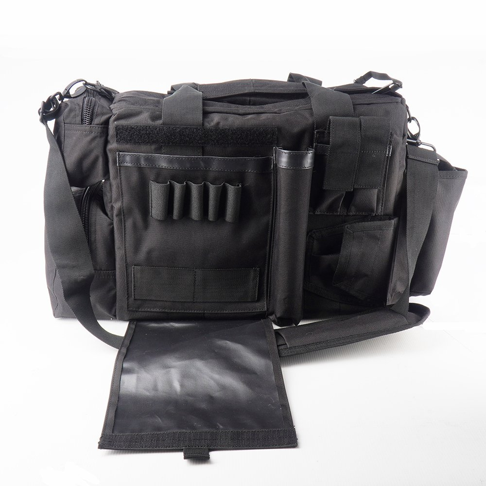 - на спині - органайзер для зберігання підручних предметів, таких як ліхтар або ручки, велика плоска кишеня для документів, кишеня для телескопічного кийка, дві кишені, наприклад, для мультитула і кишеня для наручників